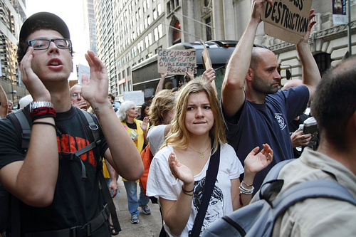 I’ve been watching the coverage of the occupy Wall Street movement — video, pictures — with an eye for color. I’m not there, in New York City, to see for myself so I have to rely on what other people choose to record from what they choose to see. I have only caught a glimpse of a scant few Latinos or blacks in the crowds of folks that are venting their angry frustration at the banking institutions in Lower Manhattan.