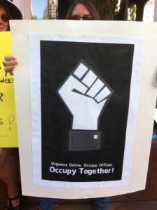 We tried to read up on the #occupyphoenix protest before the big day. We saw that the website didn’t really say much about the movement other than “we are pissed off!” Phoenix New Times did a small article and quoted one author on the Occupy Phoenix Facebook page as saying, “This land has already been occupied while we have turned a blind eye. We are in solidarity with the Dine and O’odham Nation who have been fighting this colonial system for hundreds of years. To fight the banks and wall street is to fight colonialism!” The goes on to say that the protest here is going to focus in part, on Southwestern issues like “ongoing resistance to the CANAMEX/NAFTA Highway projects and the Arizona Snowbowl. Stand with indigenous resistance to colonialism and against the destruction of the earth for profit and recreation.”