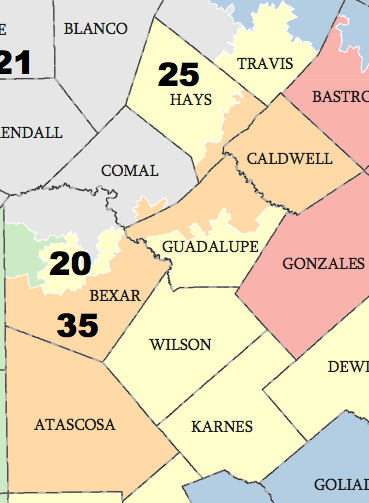 As we mentioned recently, Castro (whose brother Julián is the mayor of San Antonio), has been campaigning in the 35th, a district that up until now had snaked between Austin and San Antonio. On Wednesday, a panel of three federal judges issued temporary maps that cut out Travis County (Austin) from the district, giving it back to current Democratic Congressman Lloyd Doggett, and restored Bexar County (San Antonio) to the 35th.