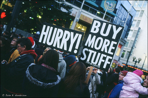 There is something terribly, terribly wrong with our country when people get trampled on by a stampede of shoppers, when people use pepper spray on their competition at Walmart, when kids grow up thinking that the meaning of life is to acquire the most crap. This kind of consumerist culture causes people to treat each other like disposable commodities. I find it disturbing and I don’t care how radical that may sound for some people. Can you imagine explaining a death caused by shopping stampede at Walmart to a refugee in the Third World? Honestly, I’m embarrassed for us.