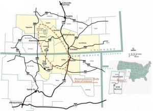 - The area is 220 miles from Denver and 130 miles from Santa Fe