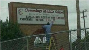 File this one under the “unfortunate” files. As reported by the local Brownsville press, a school sign about the Thanksgiving holiday has gone viral on Facebook and it is eliciting responses that range from the humorous to the ugly.