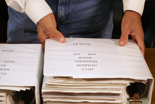 In 2009, Martinez took the job as chief deputy with the Brooks County Sheriff’s Office. He’d recently retired after 29 years as a Texas state trooper, and he hoped to lead a quiet life in Falfurrias, the small town where he had grown up. “I just wanted to wind things down a bit,” he says. He never imagined, when he took the job, that he’d be sitting across a desk from so many grieving mothers looking for their children. He never imagined the stack of thick binders documenting by year and by month the hundreds of bodies he and his deputies have recovered on the surrounding ranches.
