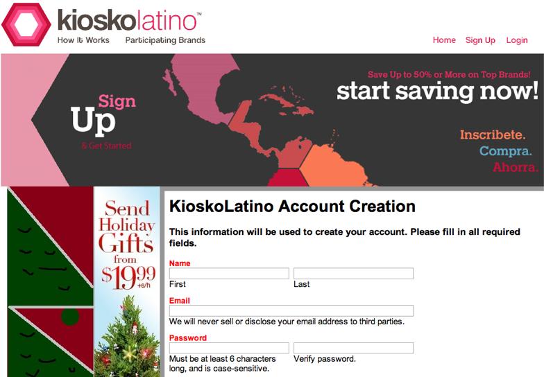 There’s a free trial membership until the end of 2010 and the release notes: “80 special deals from over 30 early-adopting retailers and both numbers are expected to double within the next 60 days. Some of the offers were created exclusively for KioskoLatino while others can be found on different membership sites. As membership grows, the majority of the offers will be exclusive or semi-exclusive.”