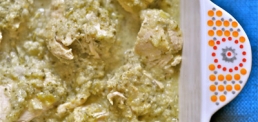 - Return the chicken (you can remove the bones and skin before you do this) to the pot where you simmered the tomatillos. Pour over pureed sauce and add 1 ½-2 cups of the remaining broth to give it a sauce-like consistency- add more or less depending on how thick you want your sauce to be. Let everything simmer on low for about 20 minutes. Serve.