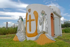 As my husband snaps photographs of the skeletal spectre La Santa Muerte, a silver pickup truck careens down the highway at high speed with its hazard lights flashing. It weaves dangerously in and out of traffic passing a highway patrol car that does nothing to detain him. Moments later an Army convoy of several humvees comes speeding down the highway in pursuit their assault rifles glinting in the harsh afternoon sun. Fear courses through me as they pass me by on the side of the road. I pretend not to see them. It would be fitting if I had to take shelter from their bullets behind the altar to La Santa Muerte. The only place in Reynosa anyone seems to find comfort anymore.