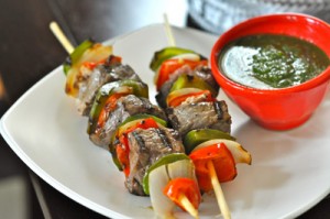 - First, place the beef skewers on the hot grill and cook for 10 to 15 minutes, turning 2 or 3 times, until the beef is medium rare. Let rest for 10 minutes before removing from skewers. Serve with warm tortillas.