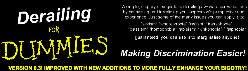 In the face of ridiculous rebuttals like the ones above, Derailing for Dummies offers a glimpse into the mind and counter arguments of so called Privileged People®. Presenting itself as first and foremost a “step-by-step guide to Conversing with Marginalised People™”, Derailing for Dummies also educates in the art of the “lesser-recognised tactic of Horizontal Hostility.”