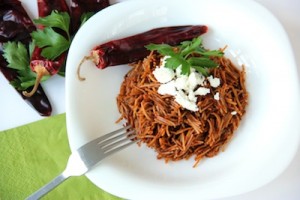 Dry Fideo In Chile Guajillo Sauce With Crumbled Goat Cheese