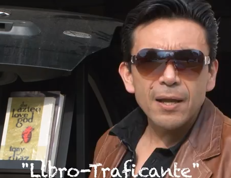 The man’s name is Tony Diaz, novelist and writer originally from Chicago but now living in Houston. His organization is called Nuestra Palabra, which promotes Latino literature, literacy and culture. His mission is simple: to smuggle Latino books back into Arizona.