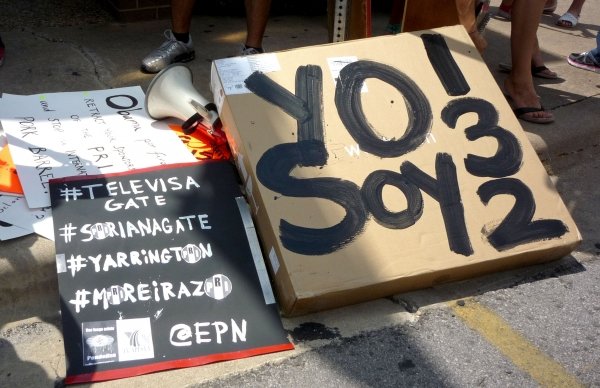 Airy Mejia, one of the organizers of the event, said they encouraged protesters to bring their own proof against Peña Nieto. He had bank statements he says prove the candidate and his party paid for gift cards they gave to people in exchange for their votes. He says others had more documents proving there was rampant fraud in the election.