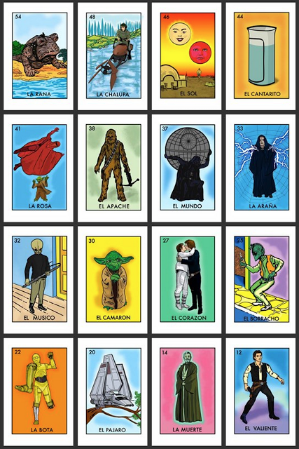 The amazing work of Chepo Peña! A fusion of Star Wars, Loteria, and a magnificent imagination!!! Thanks to ace Ph.D. Carlos Amador, UT Austin from whose facebook page I stole this!!! ;-0