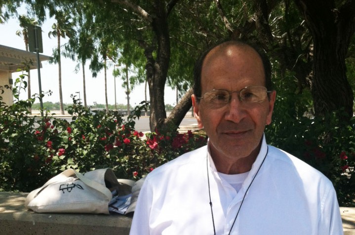 It’s early April and Catholic priest Alejandro Solalinde, 68, arrives in McAllen where he will be the keynote speaker at a migrant smuggling and human trafficking conference. He shoulders a worn Amnesty International bag stuffed with paperwork, his Bible, and his passport. Solalinde is accompanied by a quiet, watchful man with dark eyes. He is just one of the priest’s four bodyguards. The rest wait in Mexico where Solalinde has received a series of death threats.