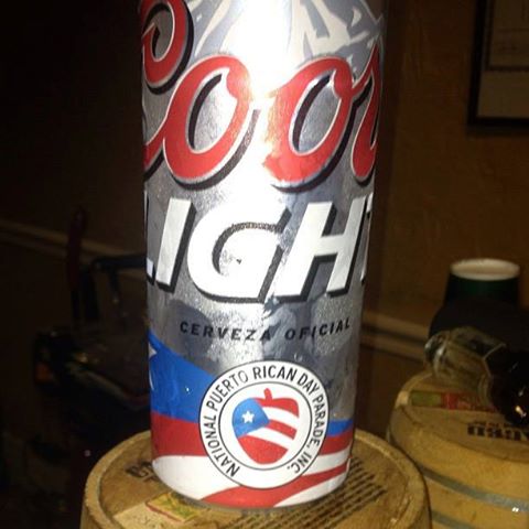 Coors Light is one of the parade’s sponsors. The Puerto Rican flag appears on the bottom quarter of the can along with the Parade’s logo, under the words “cerveza official” — official beer.