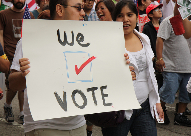 But here’s something interesting. In the 1988 election white voter participation was just under 65 percent; Latino participation was close to 48 percent. Back then, as now, the white population was older than the Latino population. Twenty four years after that the turnout for whites and Latinos was almost identical – 64.1 percent for whites, 48 percent for Latinos. The difference? 3.7 million Latino votes cast in 1988, and 11.2 million in 2012. 4 million eligible Latinos voters who didn’t vote in 1988, and 12.1 million in 2012.