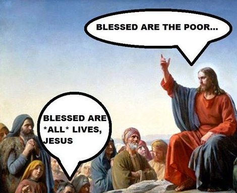 I saw a meme on social media today that put the Christian scripture’s beatitudes in the #alllivesmatter context. It was a rendering of Jesus with a telling hand held high, saying “blessed are the poor . . . ” The retort from the crowd is “blessed are all lives, Jesus.” Perfect, I thought.